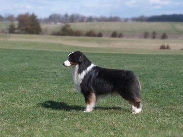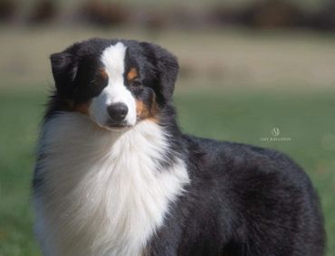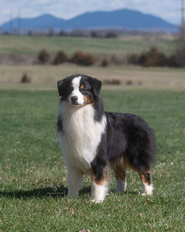 After trying multiple times to get a Drake puppy and waiting years for the perfect black tri male - he was finally born! Houston is everything I wanted from the Drake X Addie cross. Beautiful, sweet and a pedigree full of dogs I love including several dogs that go back to Fix and Demi - my foundation girls. Houston is one of the calmest Aussies I've had in a long time. He naturally follows me everywhere I go and is very level headed for such a young boy. He loves to play fetch and carry around his toys for everyone to see. We can't wait to see how he matures!