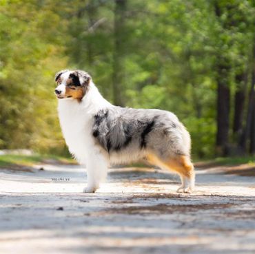 Summit came to us from Stephan Blanco with Empyrean Aussies. He is a stunning boy with an amazing pedigree full of dogs we love! He is co-owned and resides with Heather Smith in Georgia at Willow Lake Aussies. He is confident, super friendly and adventurous but also knows how to snuggle up and watch TV. We love his temperament and easy going personality. We are very excited to add him to our breeding program and can't wait to see how he matures! Please contact Heather directly for any inquires.