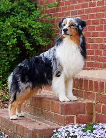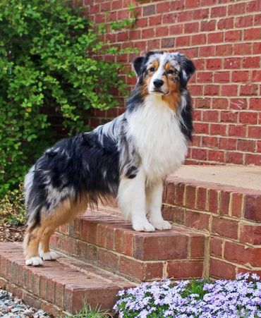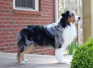 Wyatt is a beautiful eye catching boy with a heart of gold. He lives with my brother and we use him occasionally in our breeding program. You could not ask for a sweeter or more loving dog. He is very devoted to his family and wants to please. He loves to swim and play with the other dogs. There isn't a mean bone in his body - he is one big softie! He produces beautiful pups with very friendly and sweet temperaments.